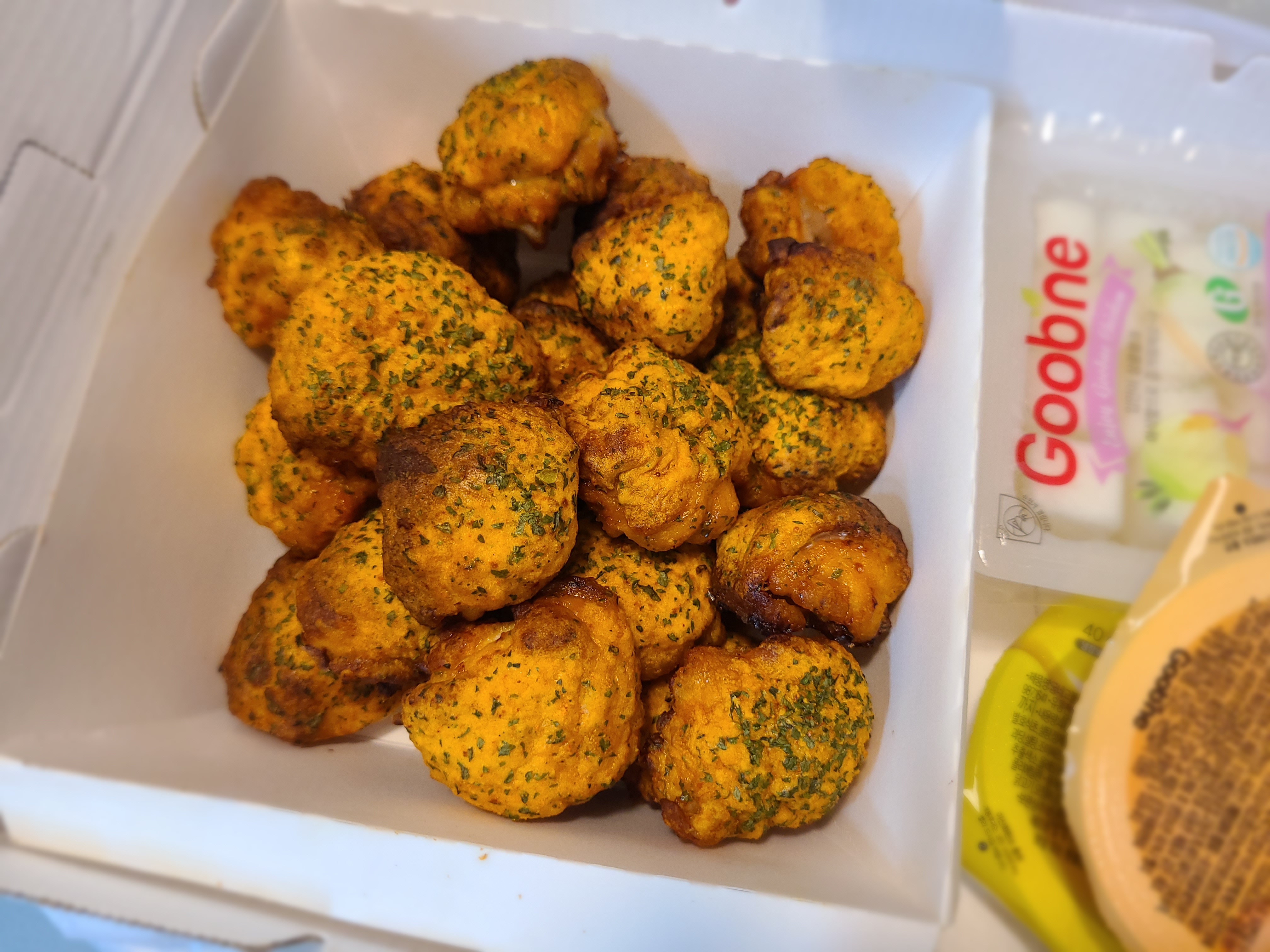 튀긴 치킨만 많이 사 먹다가 한번 굽네에 입문하고 나서 최근 굽네치킨만 먹는다!!!! 요즘 치킨 집에서 사이드 메뉴들이 많이 나오고 있는 트렌드다. 굽네 바게트 볼 처음 먹어보고 맛있어서 또